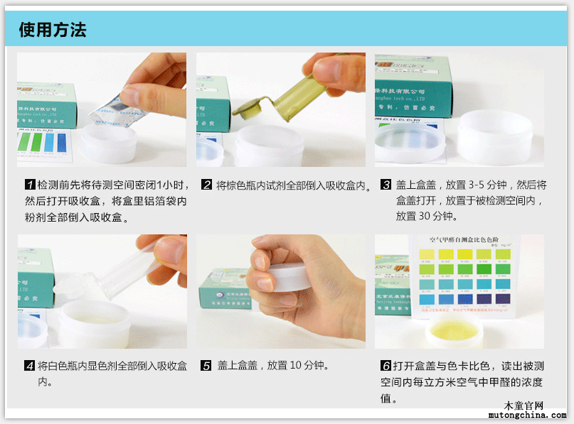 甲醛自測(cè)盒的使用方法也很簡(jiǎn)單,按照下面的操作說(shuō)明,一步一步進(jìn)行就可以了。使用中注意以下幾點(diǎn),就可以更準(zhǔn)確地判斷室內(nèi)甲醛污染程度。