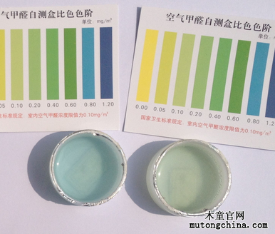 右下角淺藍(lán)色的自測(cè)盒是藍(lán)色單色系的自測(cè)盒,其顏色辨認(rèn)顯然不如黃綠藍(lán)三色對(duì)比的自測(cè)盒容易辨認(rèn),因此,選擇專業(yè)的合格甲醛自測(cè)盒很重要。