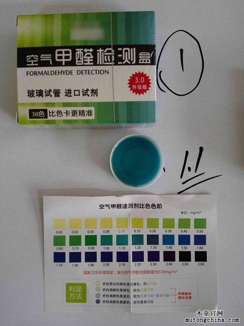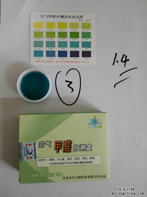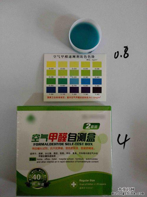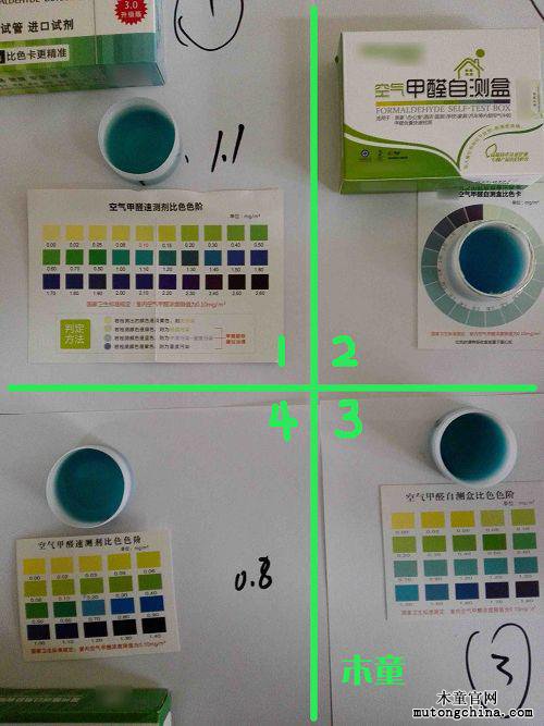 對比幾家的結(jié)果,木童和第二家檢測盒的數(shù)值一致均是1.4,準(zhǔn)確的可能性較大,但第二家的顏色單一,不容易比對結(jié)果,第一家和第四家的數(shù)值相對較低1.1和0.8且不統(tǒng)一,說明不準(zhǔn)確的可能性較大。