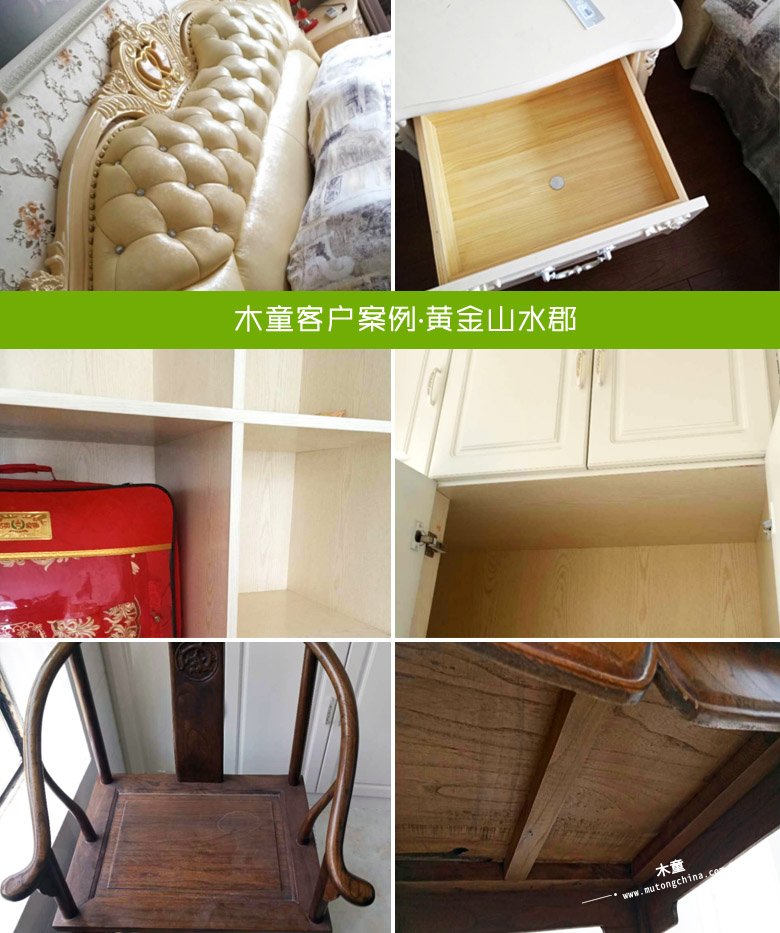 甲醛清除劑Ⅱ型治理,效果非常好,涂刷二遍即可,但要注意每遍之間的間隔,要盡量在2小時以上。像下面這些家具的話比較好處理一些,長期的甲醛釋放源主要集中在人造板家具上。另外純實木類的家具是不需過多處理的。