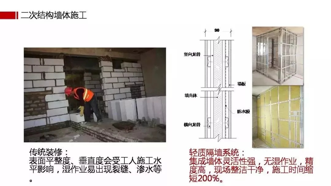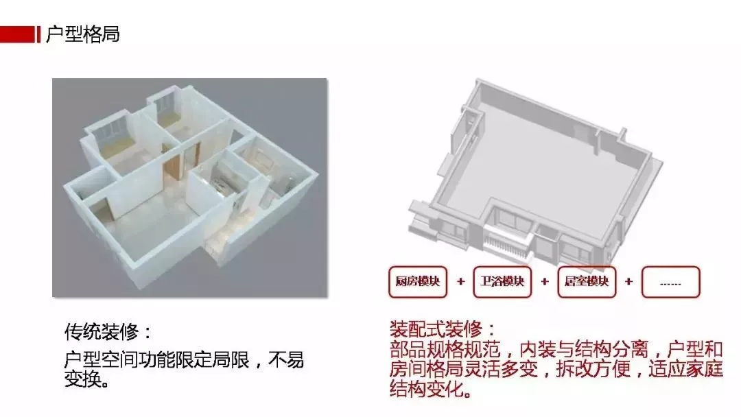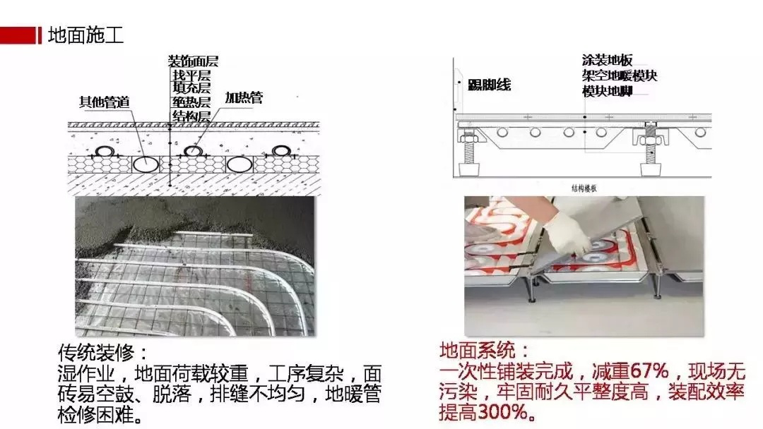 下面小編通過(guò)圖示說(shuō)明裝配式裝修與傳統(tǒng)裝修的對(duì)比優(yōu)勢(shì):