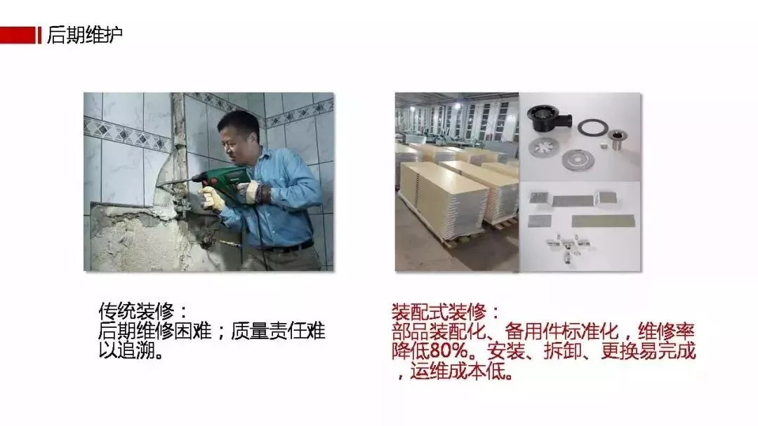 4 、便于維護(hù),降低了后期的運(yùn)營(yíng)維護(hù)難度,為內(nèi)裝部品更換創(chuàng)造了可能。