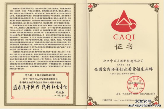 在多年的抽檢、送檢等各項檢驗中,木童系列產(chǎn)品均符合國家標(biāo)準(zhǔn),而且治理效果安全高效不反彈,是此次獲得殊榮的基礎(chǔ)。被中國質(zhì)量檢驗協(xié)會評為全國室內(nèi)環(huán)保行業(yè)質(zhì)量領(lǐng)先品牌,而且是室內(nèi)環(huán)保行業(yè)唯一一家獲此殊榮的單位,尤其顯得意義重大。這不僅是一份沉甸甸的榮譽,也是中國質(zhì)量檢驗協(xié)會和全國廣大消費者對我們北京中興天瑞科技有限公司及其木童除甲醛除異味系列產(chǎn)品的堅定信任和積極支持。