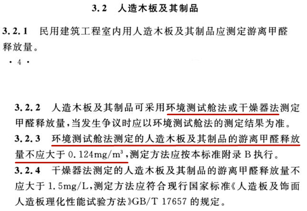 對室內(nèi)裝飾裝修設計提出了污染控制預評估要求及材料選用具體要求,為室內(nèi)污染治理企業(yè)開展事前治理提供了新的方向。以人造板為例,規(guī)定其甲醛釋放量不應大于0.124㎎/m³,材料甲醛釋放量檢測采用人造板甲醛釋放量測定的環(huán)境測試艙法和干燥器法。