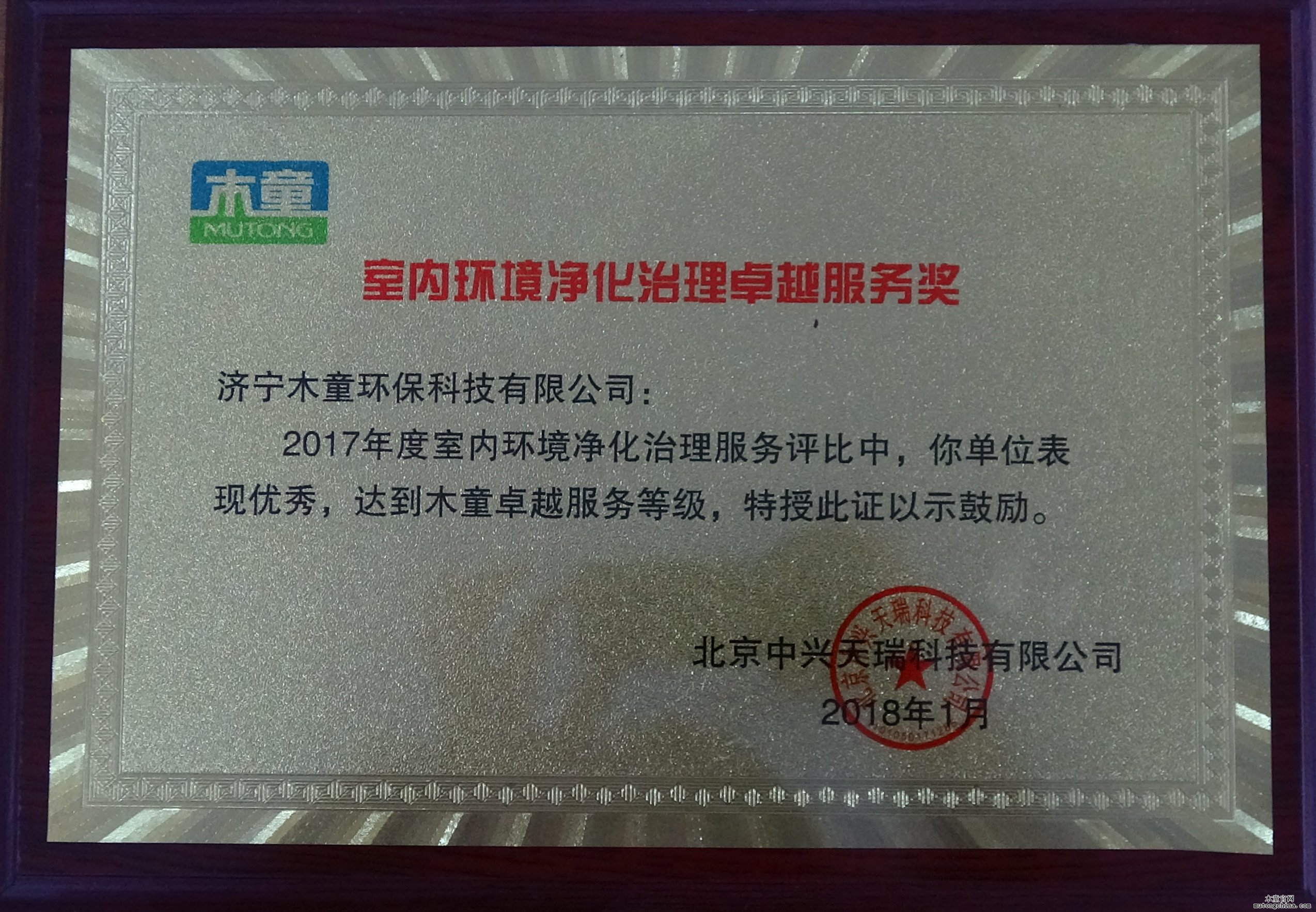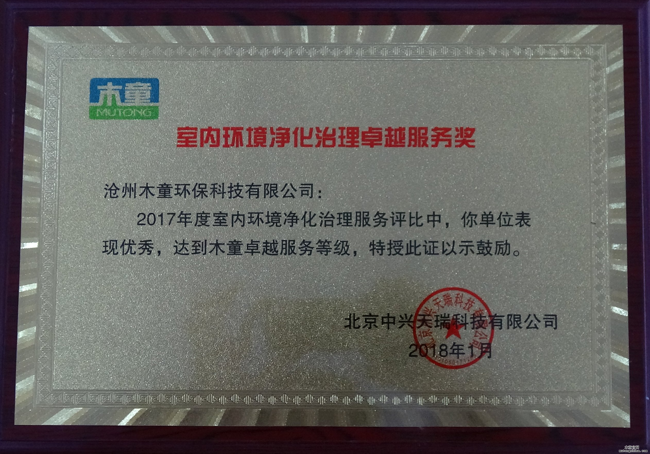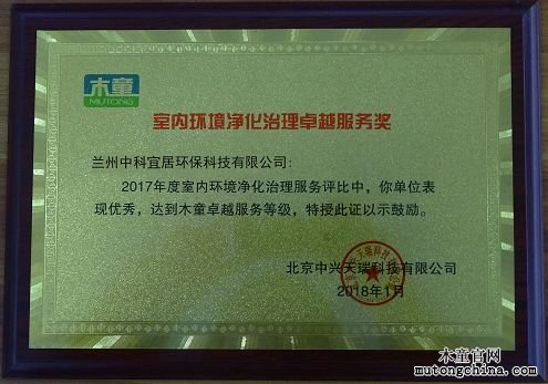 木童表彰室內(nèi)環(huán)境凈化治理卓越服務(wù)先進(jìn)單位