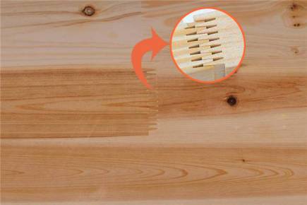 指接板是由多塊木板拼接而成,豎向木板間采用鋸齒狀接口,類似兩手手指交叉對(duì)接,在拼接過(guò)程中會(huì)用到膠黏劑進(jìn)行粘合固定,用膠量相對(duì)很少。