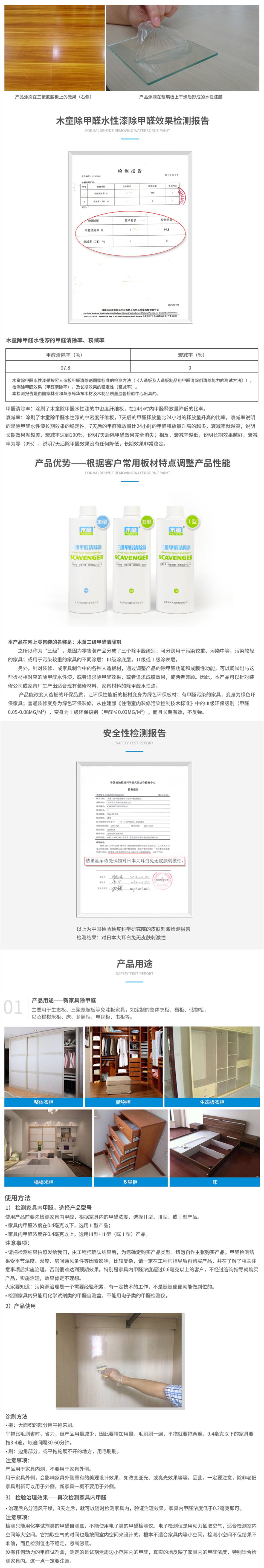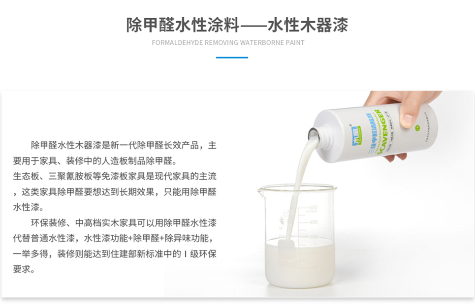 除甲醛水性木器漆=人造板甲醛清除劑+水性涂料,是一款創(chuàng)新產品。