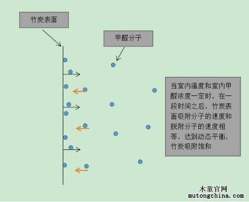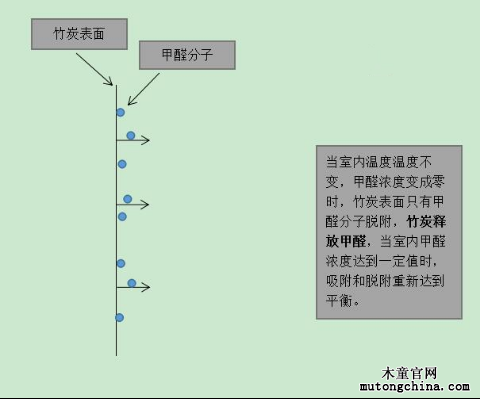 當(dāng)環(huán)境中甲醛的濃度降低時,竹炭表面的吸附和脫附平衡就會被打破,吸附速度減小,飽和的竹炭就會釋放甲醛。