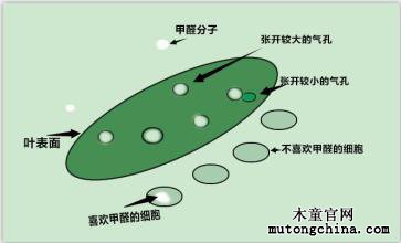 氣孔越多,甲醛進(jìn)入植物體內(nèi)的機(jī)會越多;氣孔越大,甲醛進(jìn)入得越順利;喜歡甲醛的細(xì)胞越多,甲醛被代謝的越快。(如下圖)