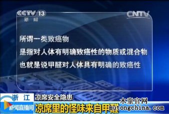 質(zhì)檢部門對87批次的涼席進行檢測,其中25批次的涼席甲醛超標,超標批次里面甲醛最高含量達到15.8毫克每升,是國家標準的10倍之多。并且還對市場上銷售的42批次的涼席進行檢測,其中24批次甲醛超標,超標批次的甲醛含量普遍在國家標準規(guī)定的2倍以上,在對某大型超市的價格最貴的涼席進行檢測中,甲醛含量實測值為5.4毫米每升,超標3倍以上。