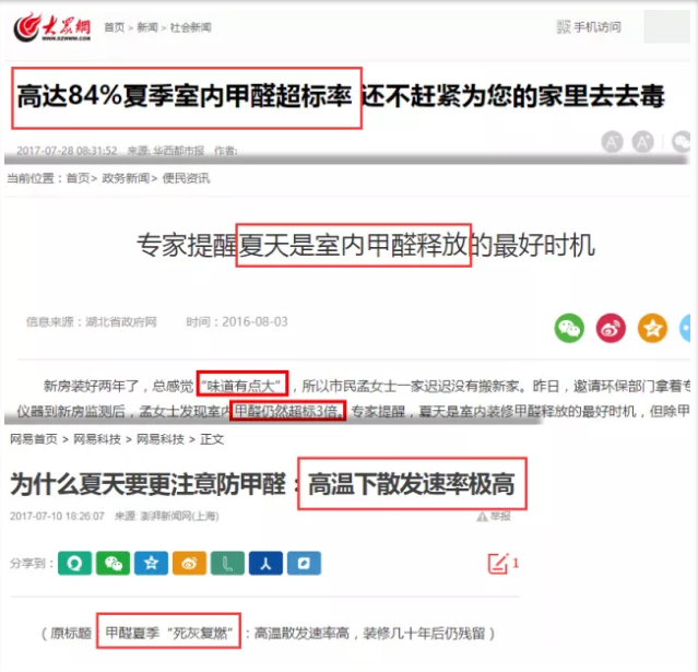 甲醛會源源不斷揮發(fā)釋放15年之久!更有相關研究結果表明:高溫天氣直接導致室內甲醛釋放量要比平常高出20%至100%;室溫每上升1℃,室內空氣中的甲醛濃度增加0.15-0.37倍。不治理甲醛就像像生活在一個毒氣室。