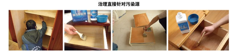 所以我們如果在選擇公司時,要選那些能治理家具的公司,最明顯的特征是,治理針對污染源是涂刷,凈化是隨便噴(噴墻面、噴地毯……)
