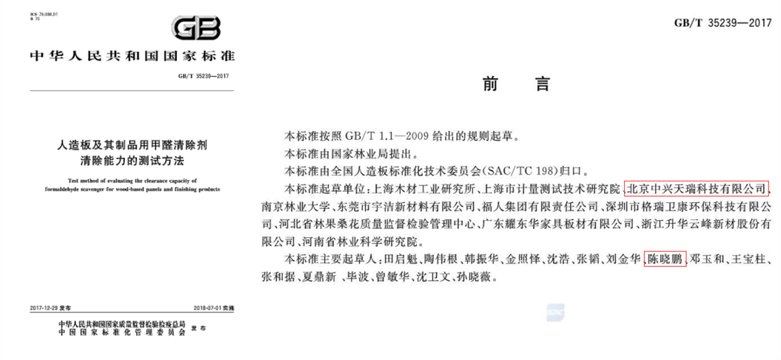 兩類甲醛清除劑產(chǎn)品的劃分始于2012年,由《甲醛清除劑》行業(yè)標(biāo)準(zhǔn)提出。2015年上海木材所、上海市計量測試技術(shù)研究院、北京中興天瑞科技有限公司等編寫的國家標(biāo)準(zhǔn)《人造板及其制品用甲醛清除劑清除能力的測試方法》,首次為人造板甲醛清除劑的產(chǎn)品性能測定確定了檢測標(biāo)準(zhǔn),人造板甲醛清除劑正式成為由國標(biāo)規(guī)范的