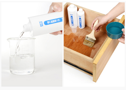 將木童強(qiáng)力除醛劑涂刷在人造板表面,有效成分借助水的滲透力,進(jìn)入板材表層的木材纖維中,水分蒸發(fā)后,有效成分在表層木纖維中形成均勻分布,遇到脲醛樹脂膠中游離出來的甲醛后,即捕捉并發(fā)生聚合反應(yīng),生成不可逆的無毒無害的大分子樹脂膠。這樣不僅從源頭上根治了人造板甲醛污染,而且不產(chǎn)生二次污染。只要在人造板中的還存在有效成分,那么與甲醛的聚合反應(yīng)就會(huì)持續(xù),從而達(dá)到長(zhǎng)期穩(wěn)定的治理效果。