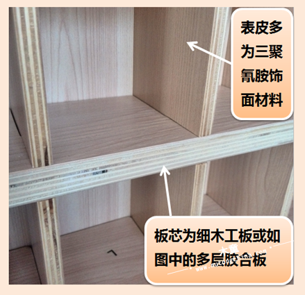 家具外表面使用了經(jīng)過(guò)處理的裝飾面板,或者噴涂油漆,家具內(nèi)部不作任何處理,為細(xì)木工板、膠合板等素板的裸露面,甲醛揮發(fā)無(wú)任何阻擋,是最大的長(zhǎng)期甲醛污染釋放源。如圖中的床箱和儲(chǔ)物柜。