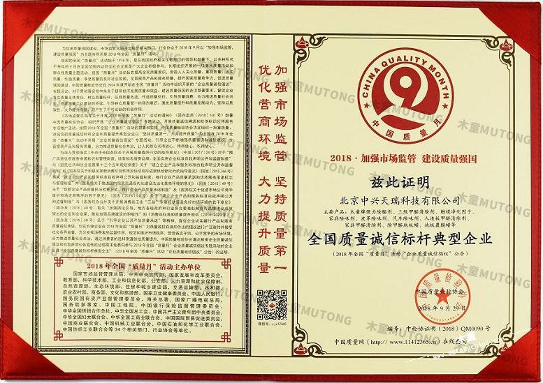 木童榮獲2018年全國質(zhì)量誠信標桿典型企業(yè)