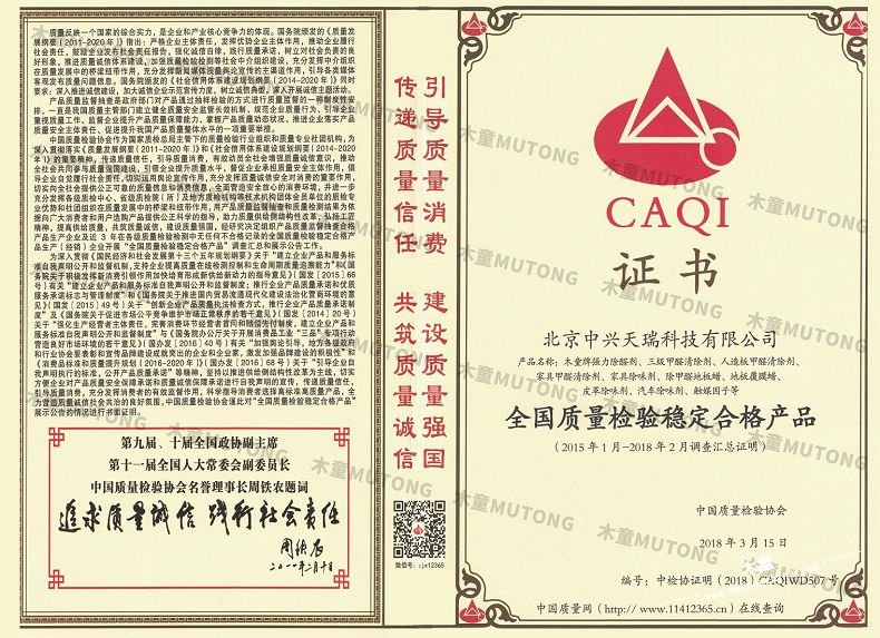 木童榮獲2018年全國質(zhì)量檢驗(yàn)穩(wěn)定合格產(chǎn)品
