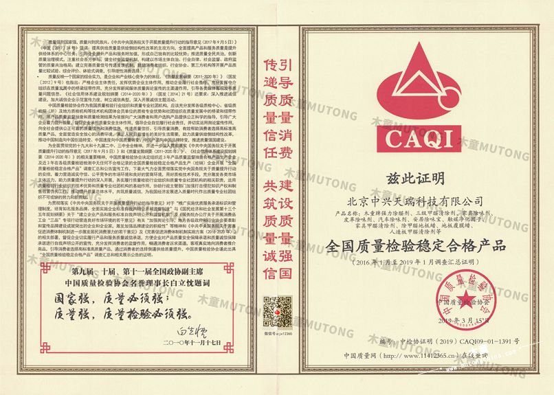 木童榮獲2019年全國質(zhì)量檢驗穩(wěn)定合格產(chǎn)品