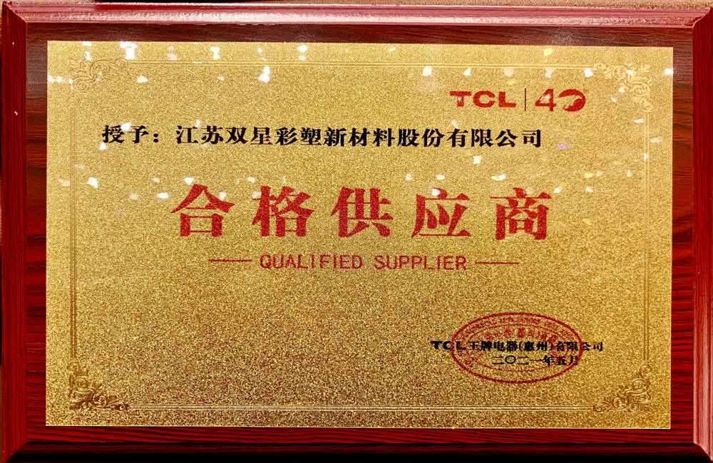 Recently, in the annual supplier evaluation, Shuangxing New Material was awarded the title of "Changhong Annual Excellent Supplier" and "TCL Qualified Supplier". Since the establishment of the cooperative relationship with Sichuan Changhong and TCL, from product cooperation to technical support, the company has fully reflected the strategic partnership of mutual benefit and win-win results. This time, Sichuan Changhong and TCL awarded the company the titles of "Changhong Annual Excellent Supplier" and "TCL Qualified Supplier", which fully recognized and comprehensively affirmed all aspects of the cooperation between the two sides over the years.