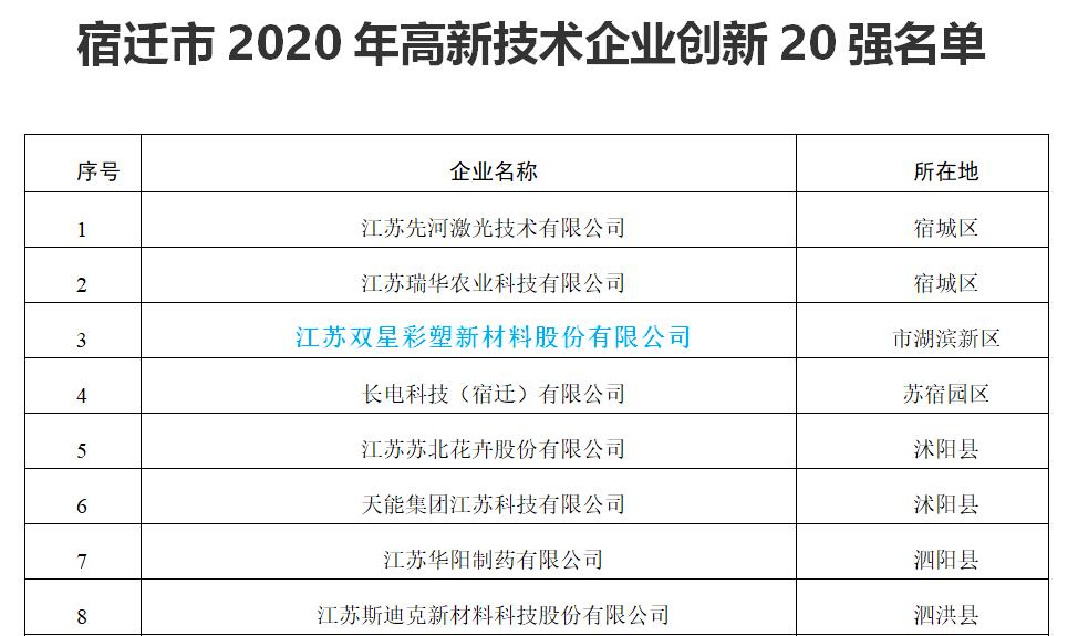 Good news! Double Star New Materials Ranked in Suqian's First Batch of "Top 20 High tech Enterprises for Innovation"