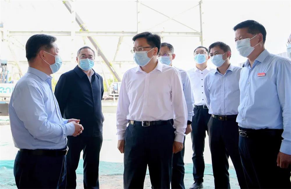 On the morning of May 6, Chen Zhongwei, Deputy Secretary of Suqian Municipal Party Committee and Mayor of Suqian, and his delegation went to Double Star New Materials to investigate the construction progress of major industrial projects in the province; Zhang Mingkang, member of the Standing Committee and Executive Vice Mayor of Suqian City, Zhang Hui, deputy mayor of Suqian City and member of the Party Leadership Group of the municipal government, Wang Shoubing, vice chairman of the CPPCC Suqian Municipal Committee, member of the Party Leadership Group and director of the Municipal Development and Reform Commission, Luo Zhihong, secretary-general of Suqian Municipal Government, and Zhang Xianyan, secretary of the Party Working Committee of Hubin New Area accompanied the survey.