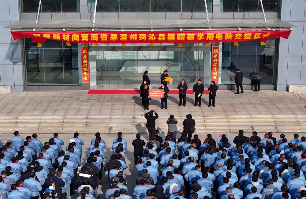 To support the development of educational undertakings in the western region and continuously improve the school teaching environment and quality, Shuangxing New Materials donated 400 teaching computers to Maqin County, Guoluo Prefecture, Qinghai Province. On December 20th, a meaningful donation ceremony was officially held in the midst of winter.