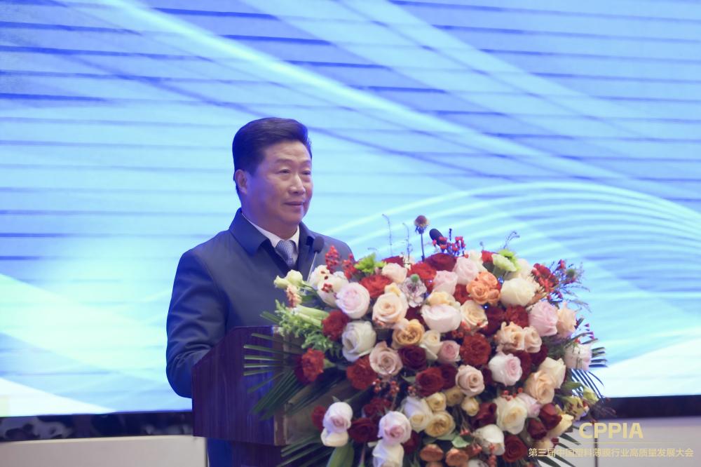 江蘇省塑料加工工業協會會長、雙星新材董事長吳培服致歡迎辭。吳培服董事長強調了塑料薄膜行業在國民經濟中的重要地位,以及面對新時代挑戰,行業必須加快轉型升級,實現高質量發展的緊迫性。表達了雙星新材愿與行業同仁攜手共進,共同推動中國塑料薄膜行業邁向更高水平的決心。